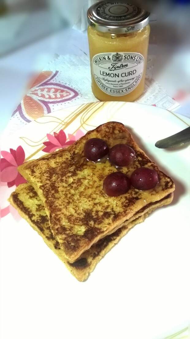 First, how to make French Toast. It's easy. Ingredients: Sliced bread, eggs, milk, cinnamon or vanilla extract (optional), cooking margarine, salt, maple syrup. Method: 1. beat eggs, milk and a pinch of cinnamon and salt in a bowl 2. Dip bread slices in the egg mixture and allow each side to soak up the mixture. ( you have to flip sides) 3. melt a little cooking margarine or butter in a hot frying pan or skillet. ( just enough to lightly coat the pan. you should mind that too much oil will get absorbed by the bread and make your toast soggy. not good) 4. Toast each side of each slice. Mind that it doesn't get burnt. 5. Serve warm with a drizzle of maple syrup. Yum! Toppings: For the Nutella and Banana toppings. Only dip one side of each slice of bread if you don't care for very lightly cooked eggs then put a spread of Nutella and banana slices on the side of slice that wasn't dipped. * For Lemon Curd and grapes topping. Dip both sides of slices. Toast and then spread with lemon curd topped with seedless grapes. It's evening, but I'm craving breakfast again.